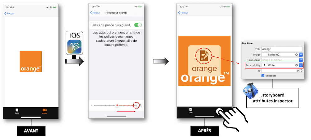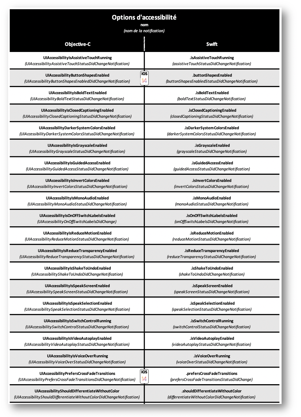 L'accessibilityTrait est disponible via l’interface builder de Xcode mais également utilisable directement via le code.