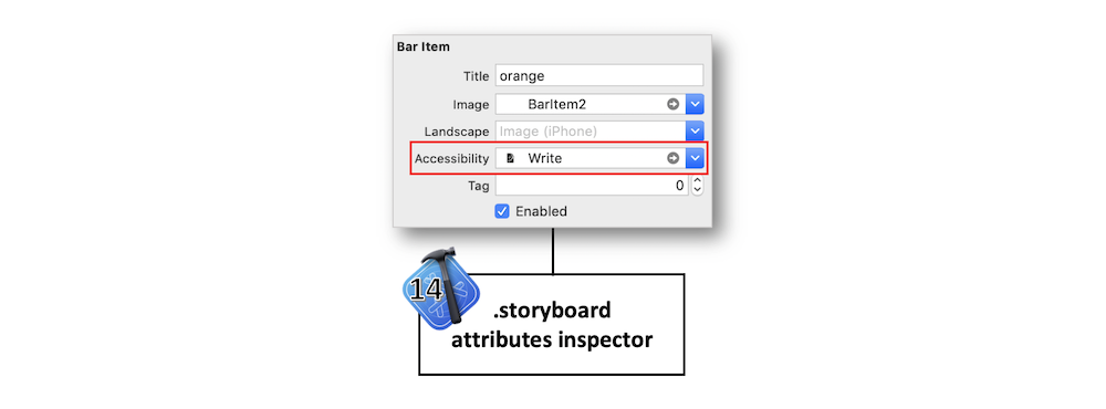 accessibilityLabel : le label permet de préciser le titre spécifique à l’accessibilité qui est lu par VoiceOver en lieu et place du texte du composant si celui-ci en possède un, ce qui permet d’avoir un texte de composant plus explicite que celui affiché à l’écran.