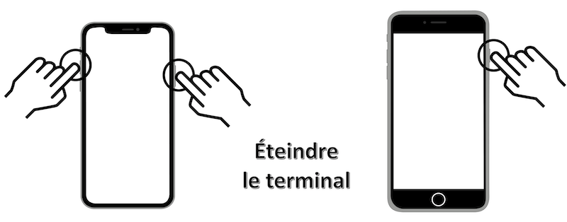 Cette page décrit de façon non exhaustive les gestes spécifiques d'un terminal sans bouton principal présent sur le bas de l'écran à l'aide d'explications textuelles et de schémas permettant de visualiser plus facilement les manipulations à réaliser.