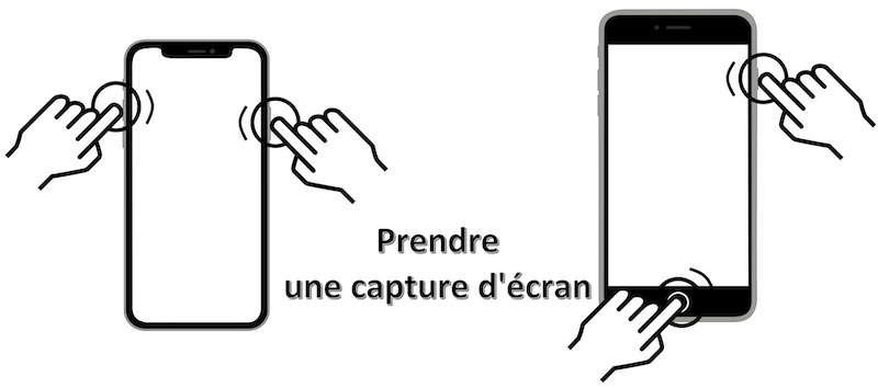 Mouvement : effectuer une pression rapide sur le bouton latéral droit et sur le bouton d'augmentation de volume de façon simultanée.